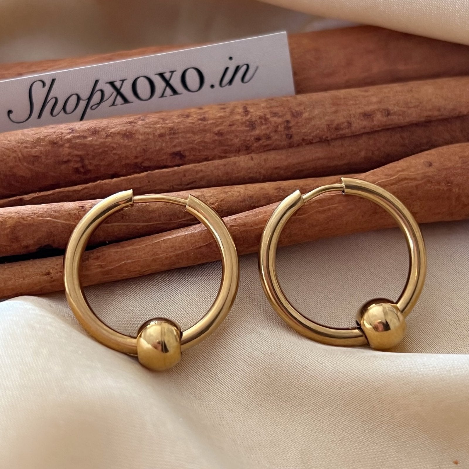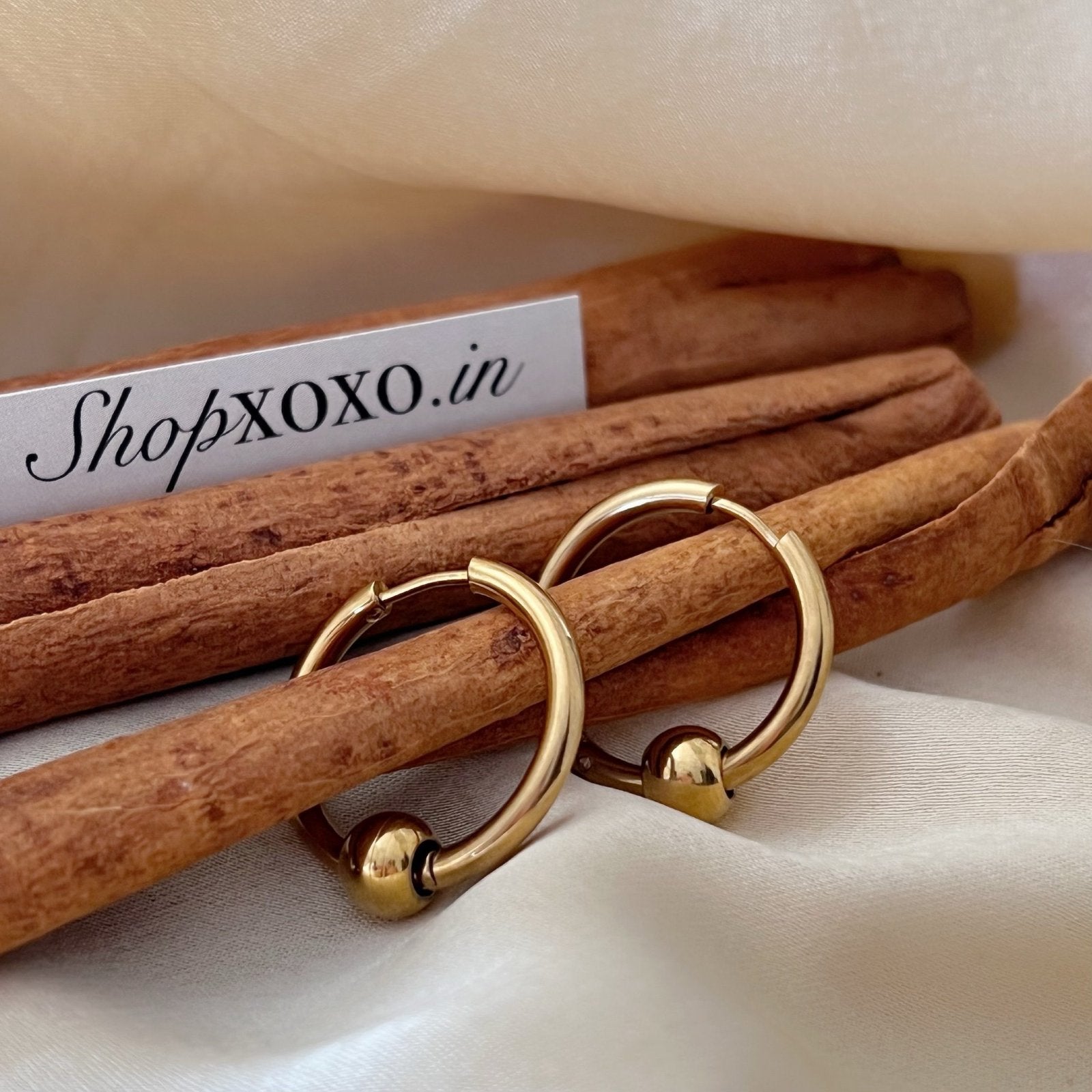 Uplift your everyday outfits with our chic ball hoops. (Gold)
