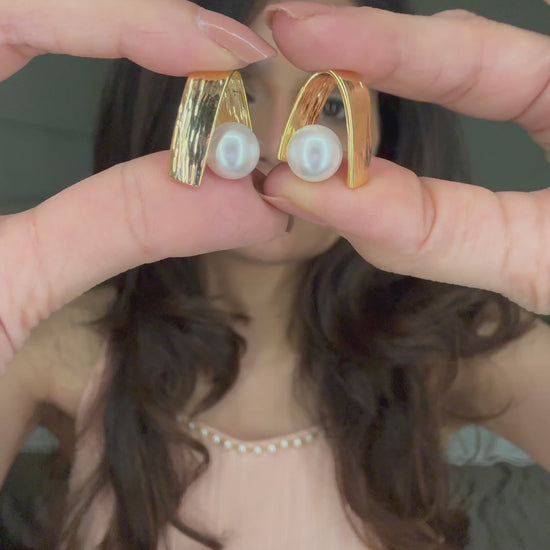 Lustrous pearls adorned with a touch of golden allure in these Bella earrings. (Gold)