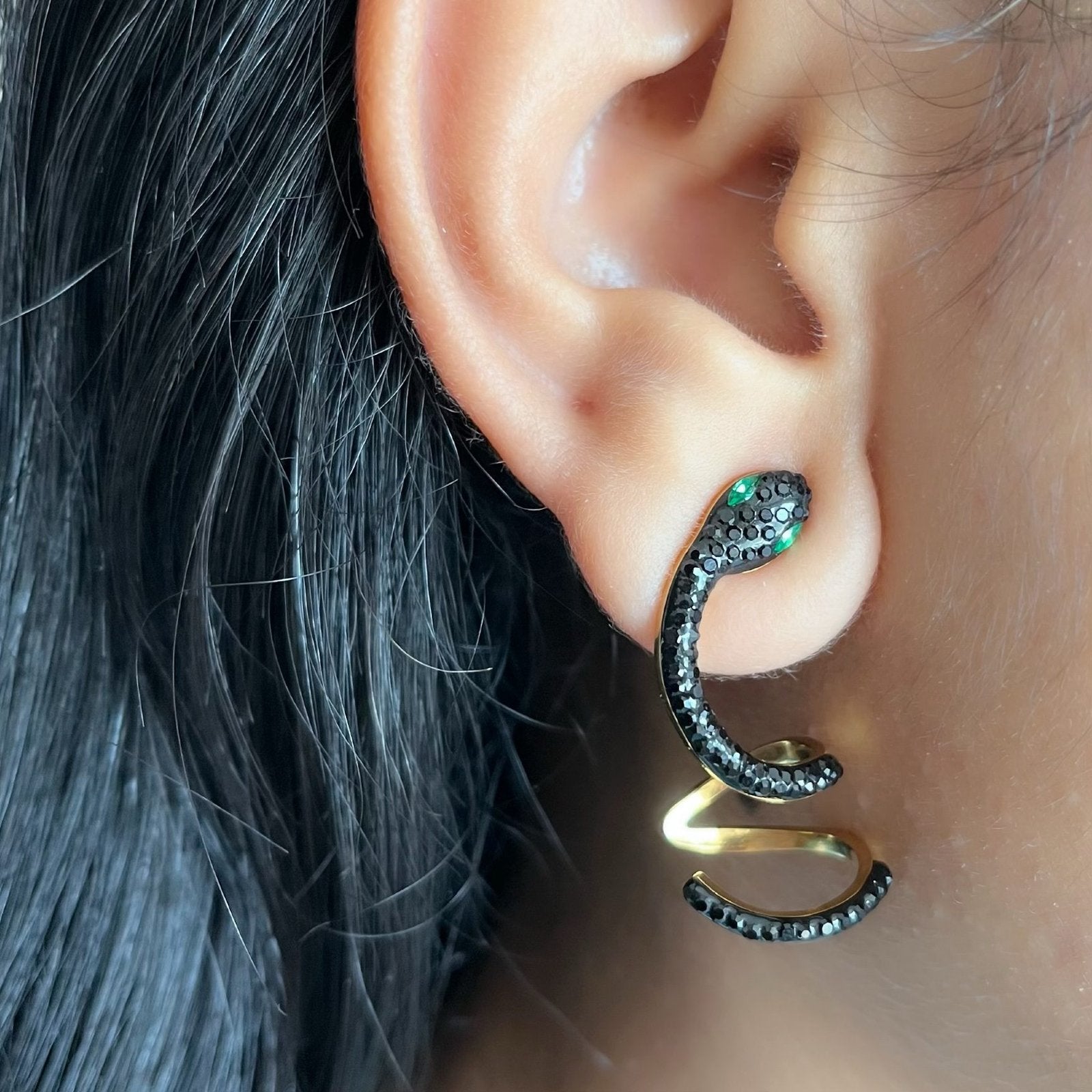 Tired of wearing everything basic? Try these exclusive serpenti earrings. (Gold)