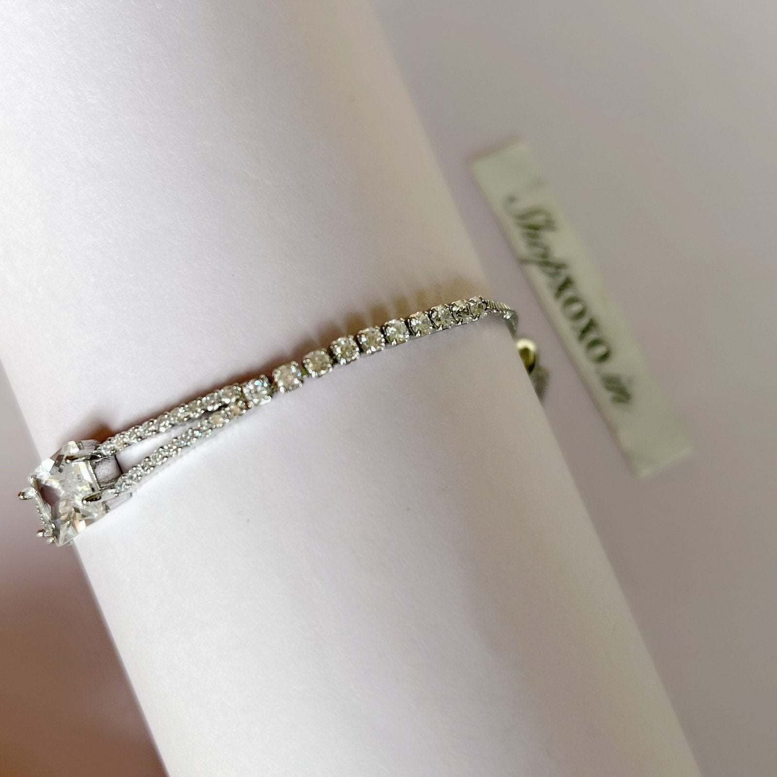 This exquisite stunner is perfect to add a touch of elegance and sparkle to your outfit. (Silver)