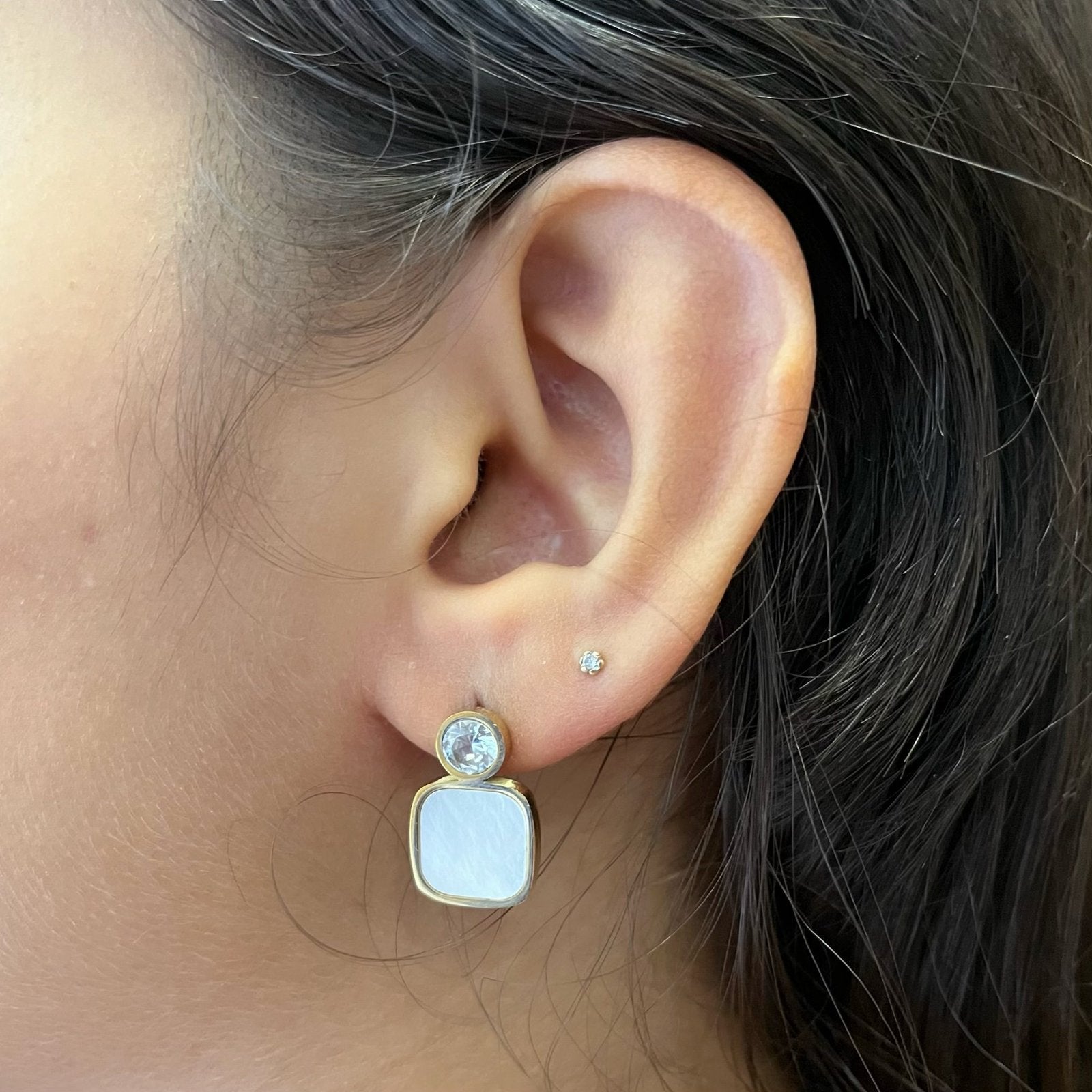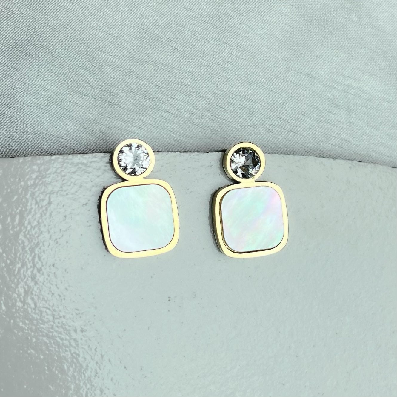 Introducing Elysia Earrings, a classic and beautiful accessory adorned with exquisite mother of pearl. Elevate your style with these elegantly crafted earrings that combine timeless design with natural opalescent hues. Perfect for any occasion, these earrings will effortlessly enhance your outfit, making you stand out with a touch of sophistication and grace. Upgrade your jewelry collection with Elysia Earrings, the epitome of elegance.