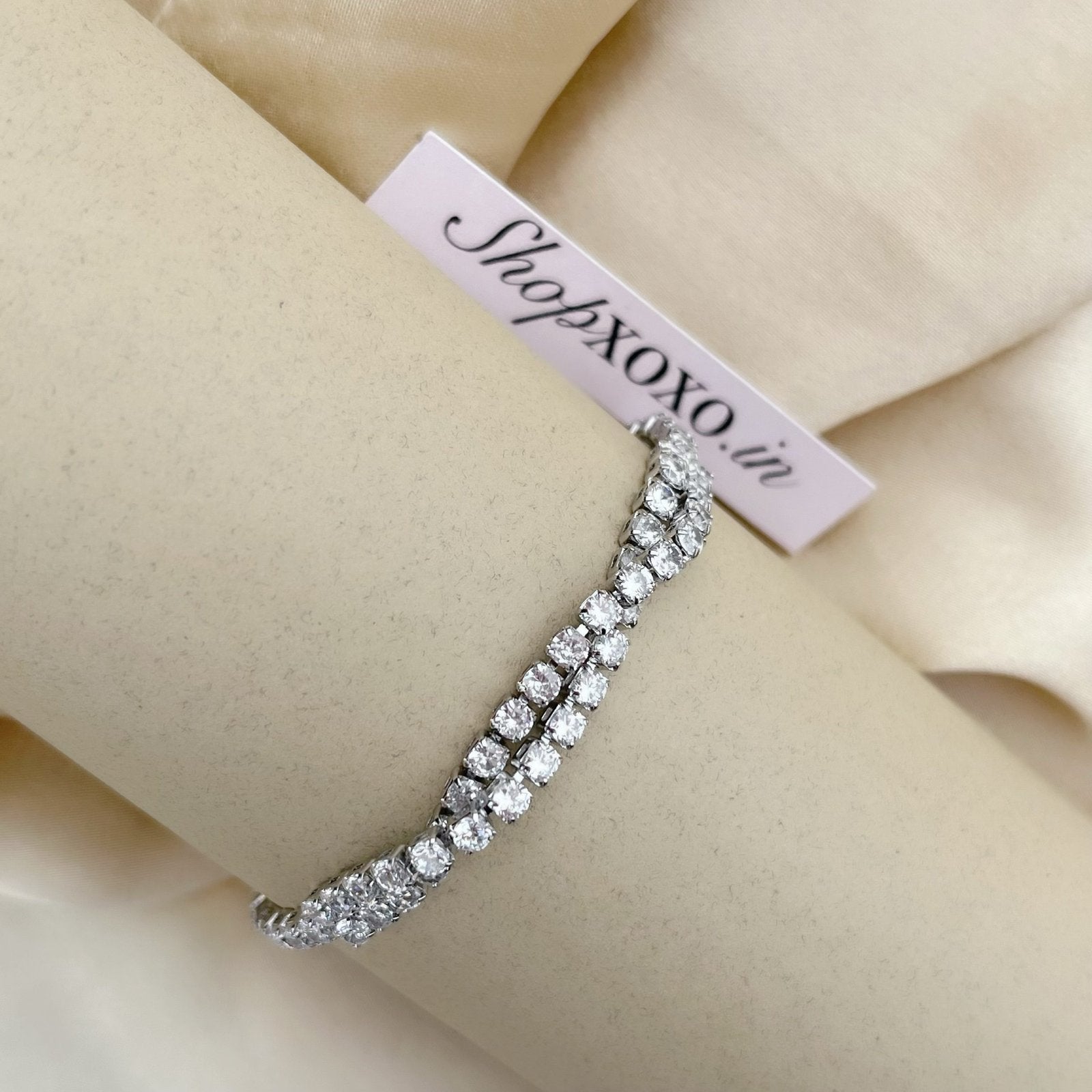 Add a beautiful twist to your look with our dazzling stunner . (Silver)