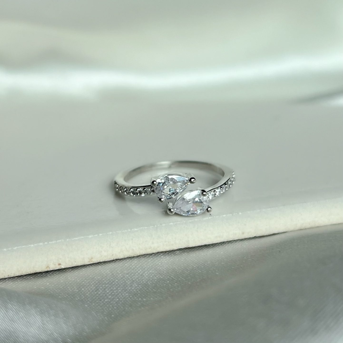 This ring is made using CZ diamonds.