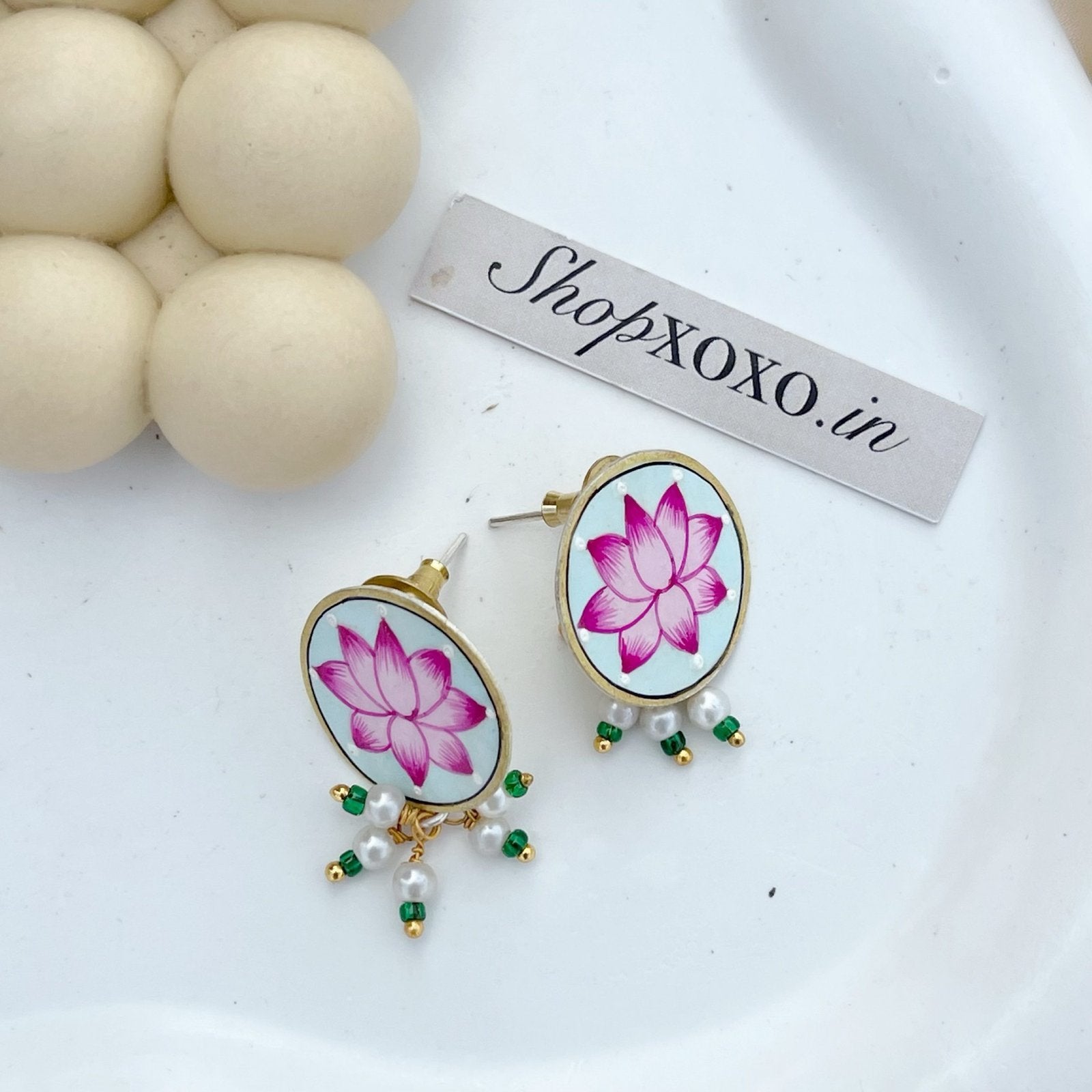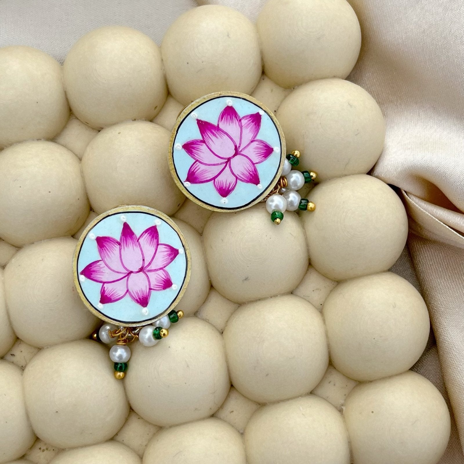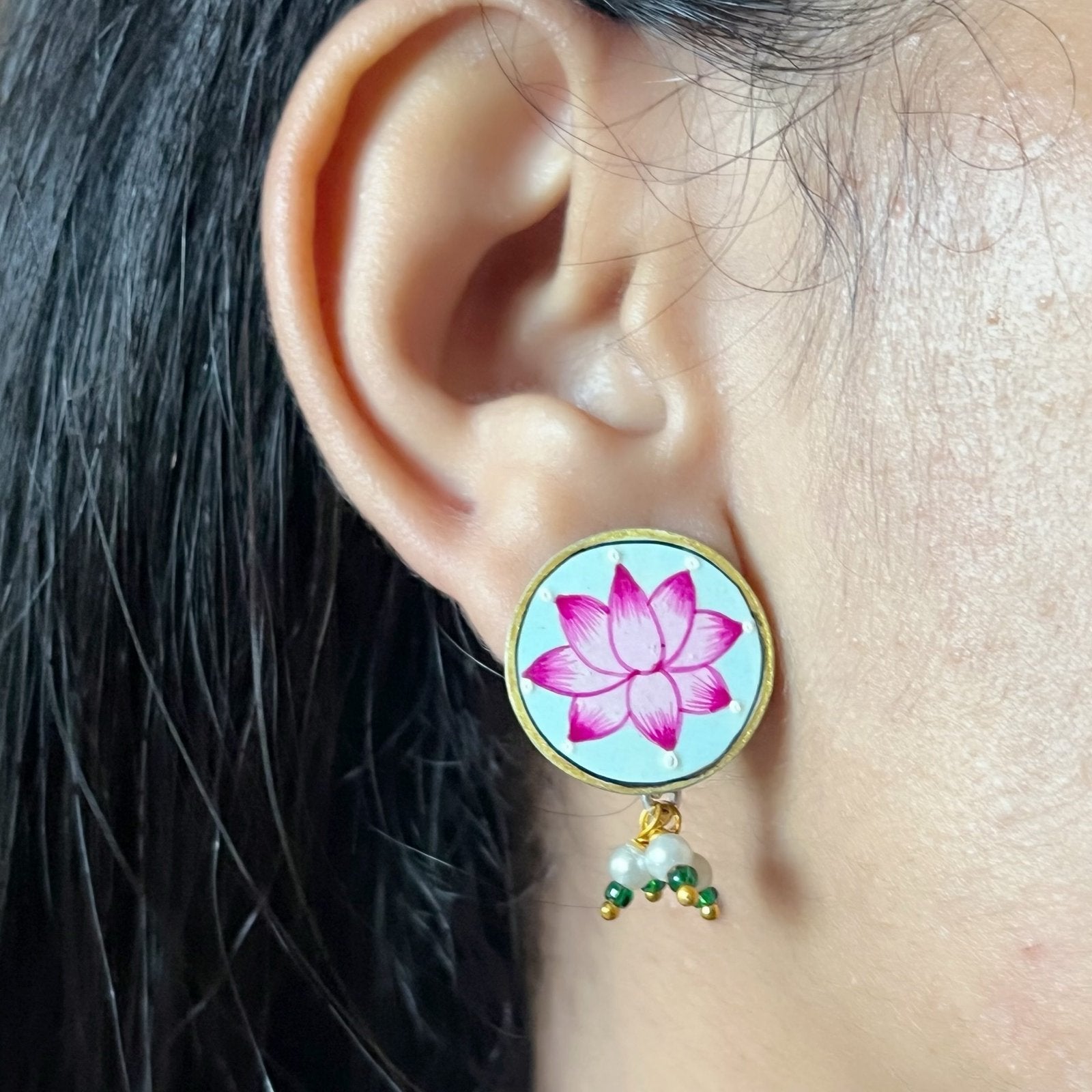 Hand Painted Lotus Earrings