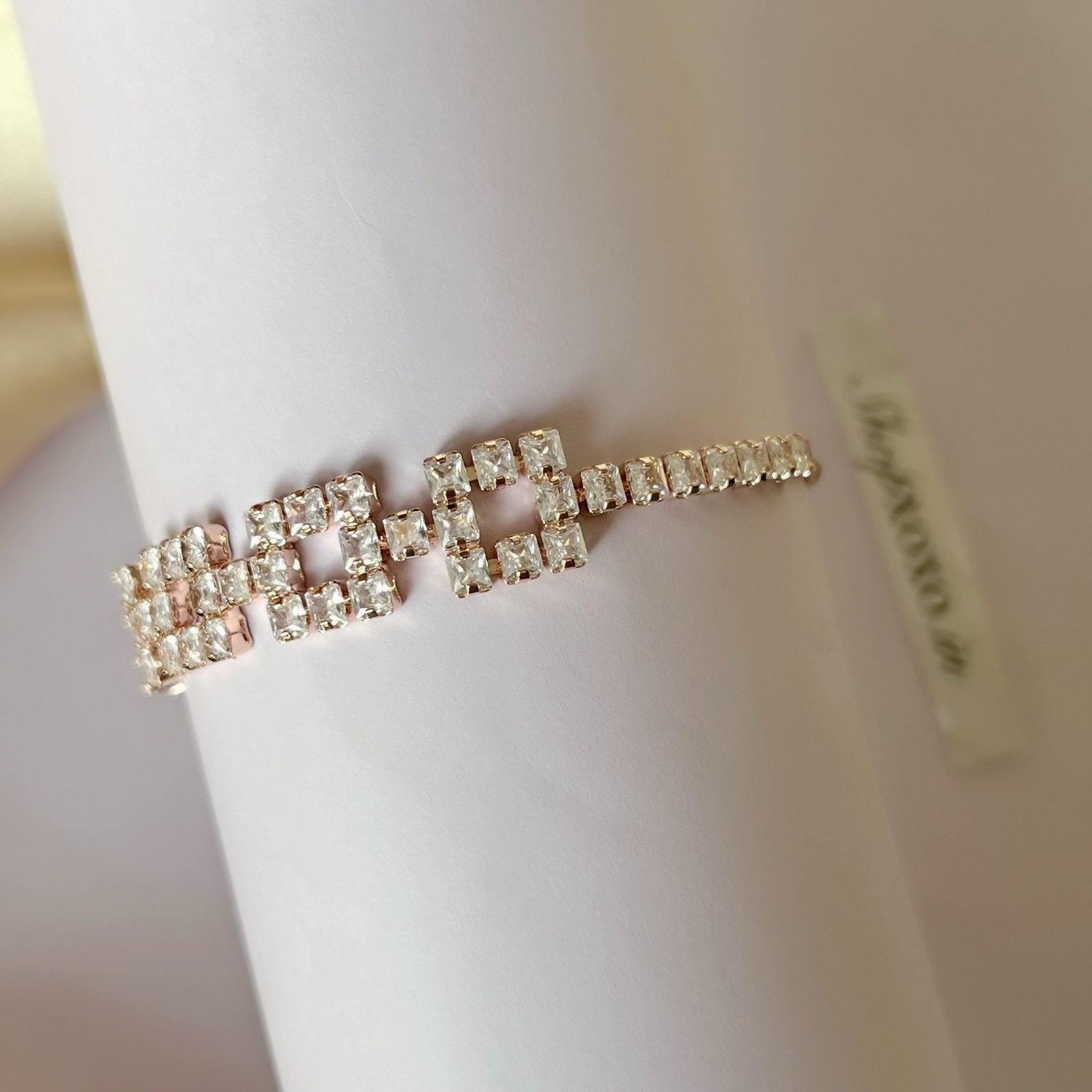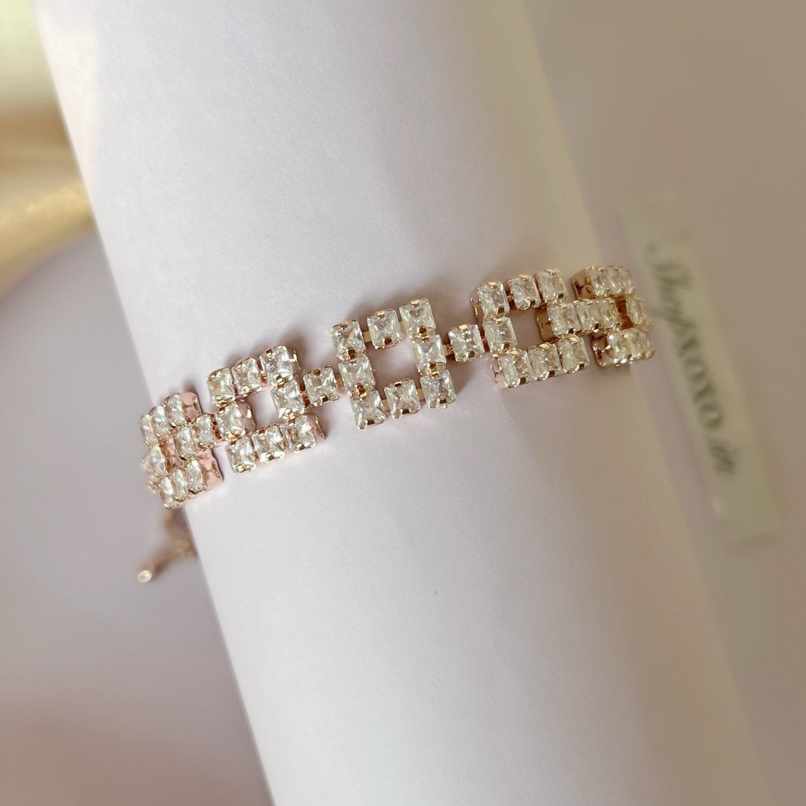 Get ready to add some extra sparkles to your look with this dazzling bracelet. (Rose gold)