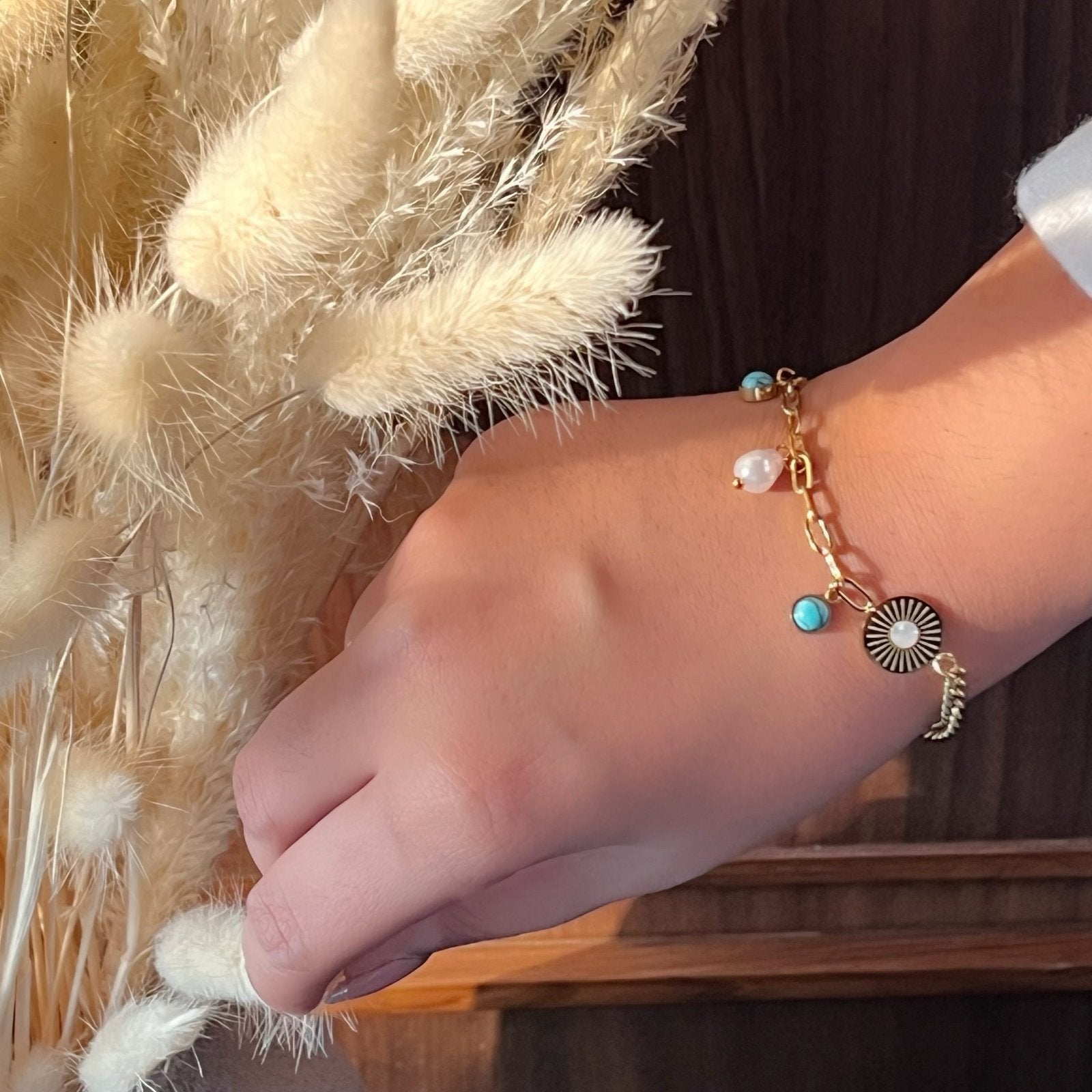 This charm bracelet is a unique combination of style and expression. (Gold)