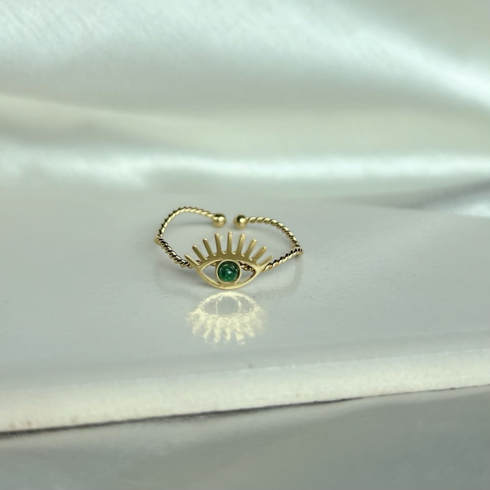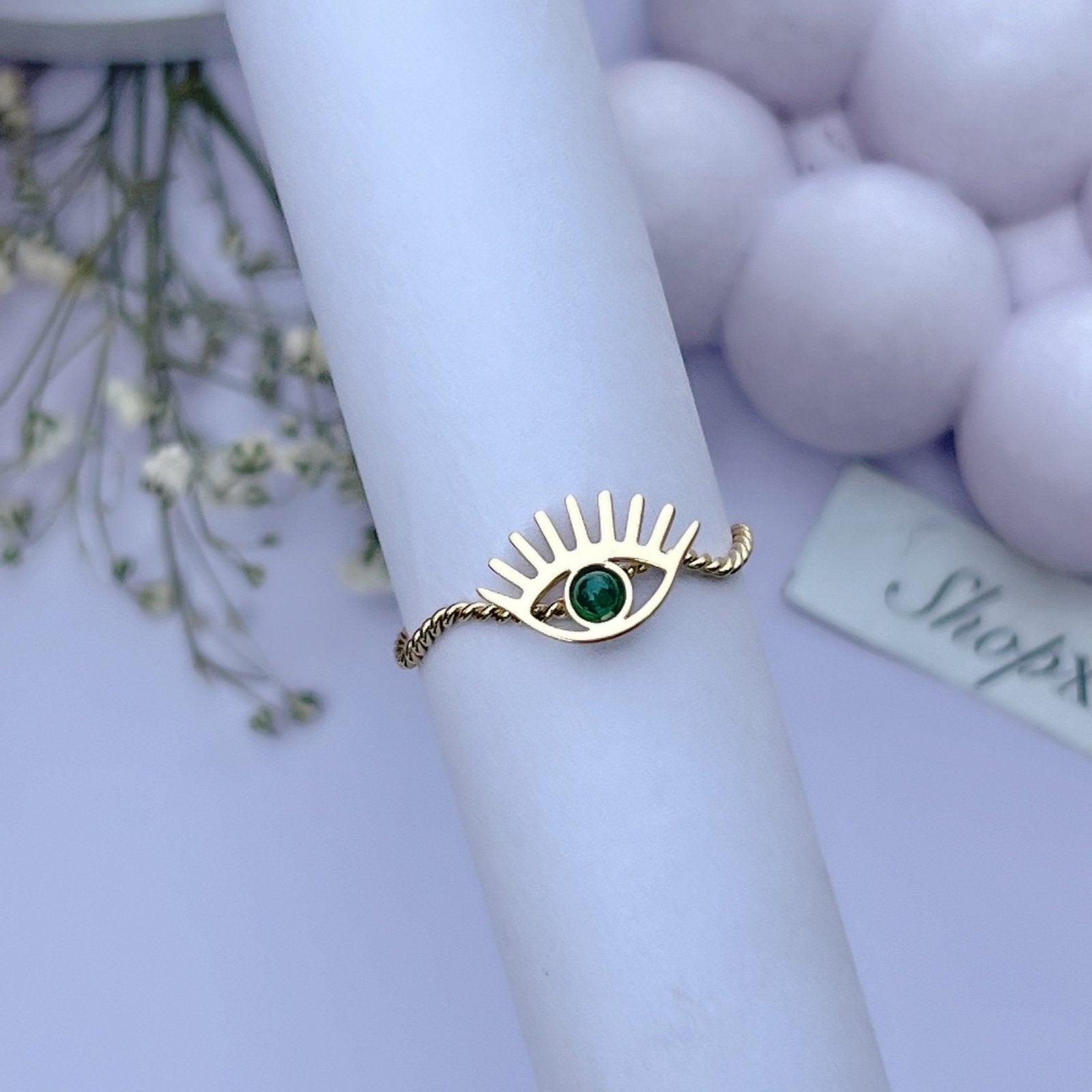 Dainty, light and a sign of good vibes. This minimal evil eye ring will protect you from all the negativity around. (Gold)