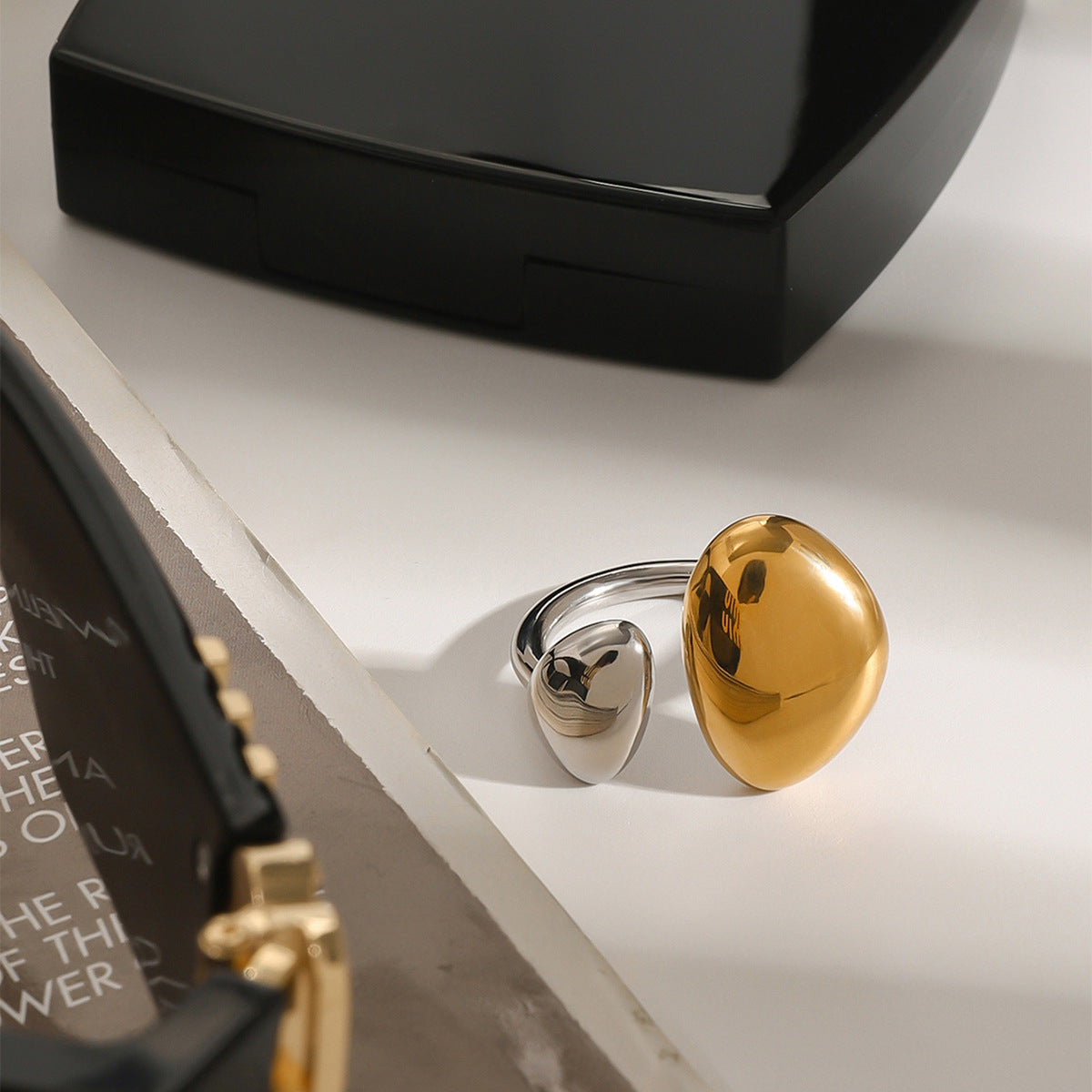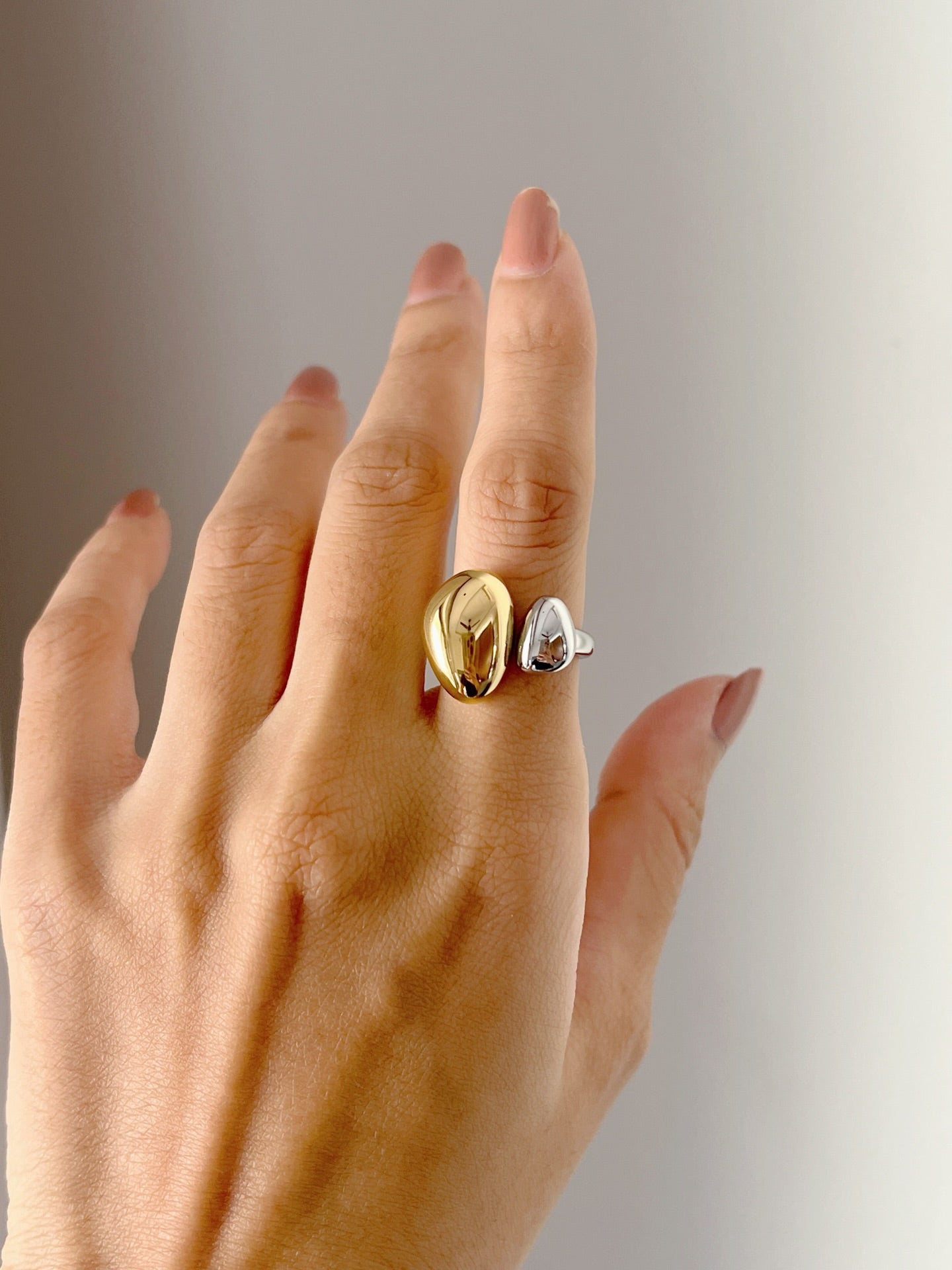 This is a two tone side adjustable ring. Be a part of the mix metal trend.