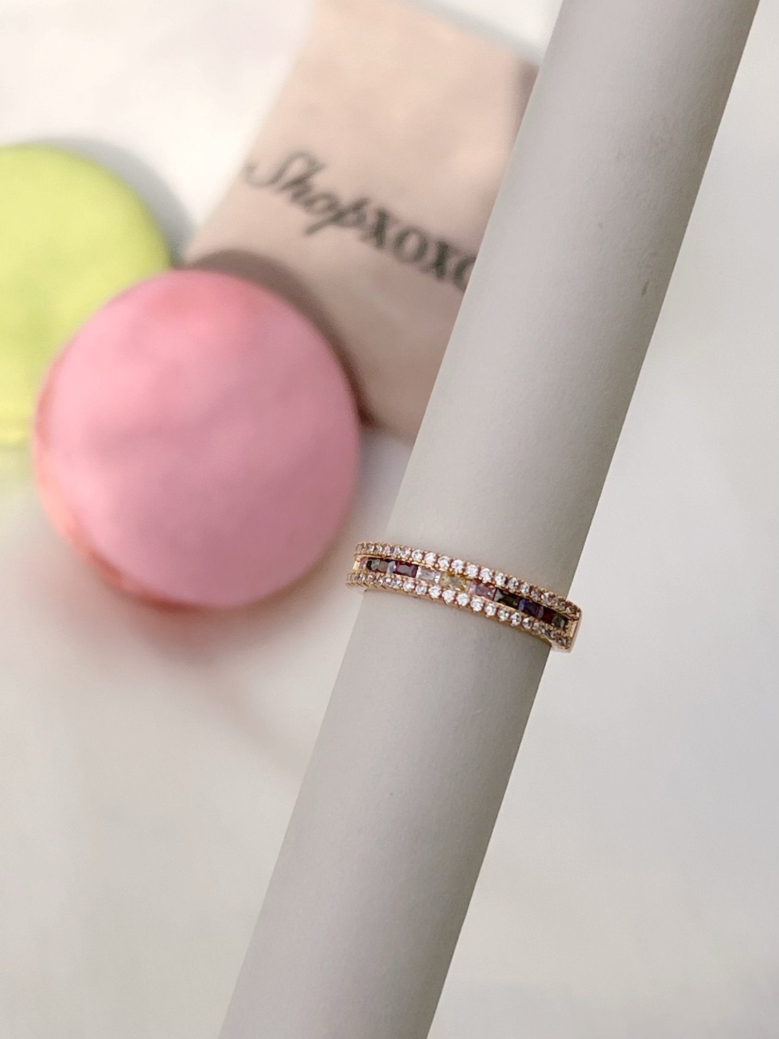Add some rainbow to your look with this multi colour ring. (Gold)