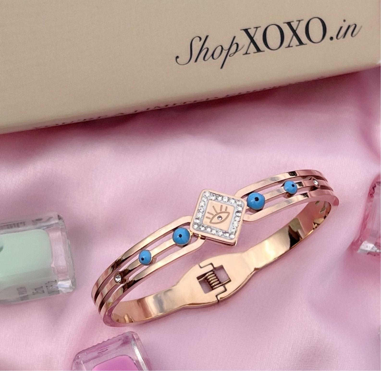 Attract only good vibes by wearing this evil-eye stunner. (Rose gold)