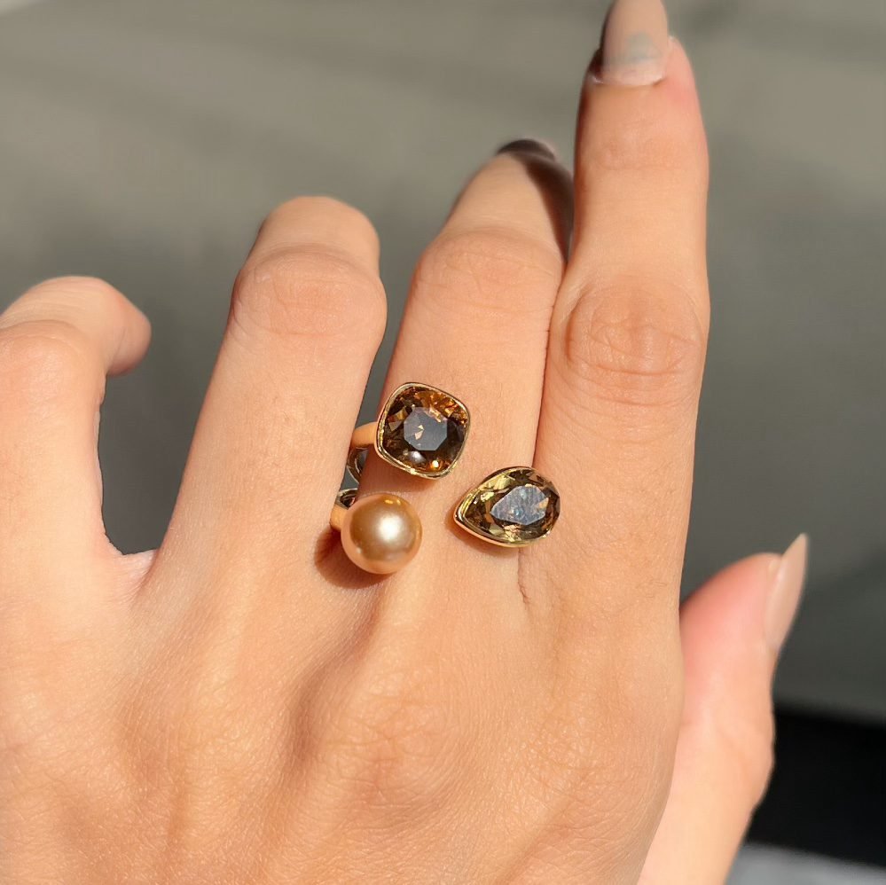 Glamorous gold, pristine pearl ,and dazzling topaz- triple the allure.(Gold)