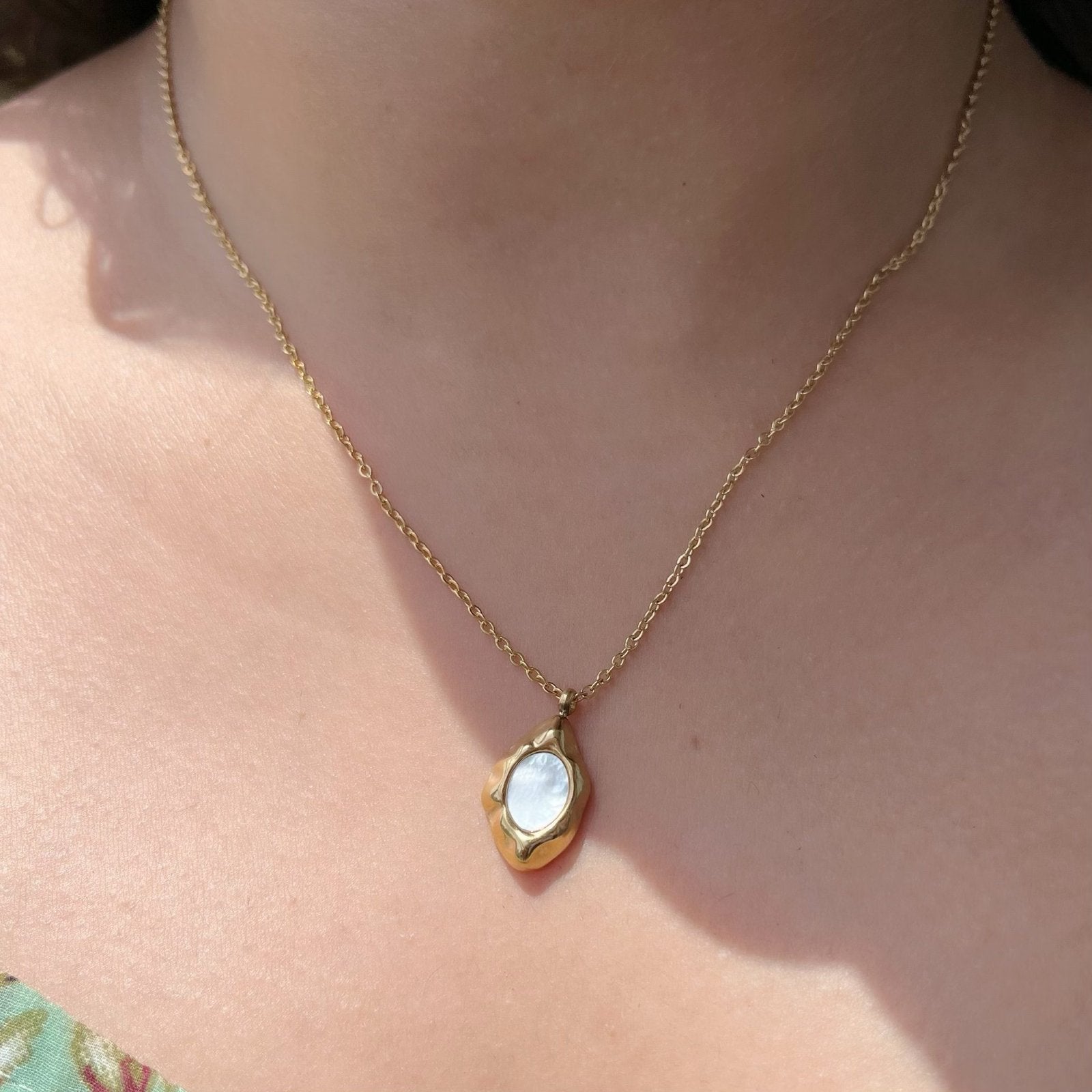 Embrace the beauty of mother of pearl with this alluring and dainty neckpiece. (Gold)