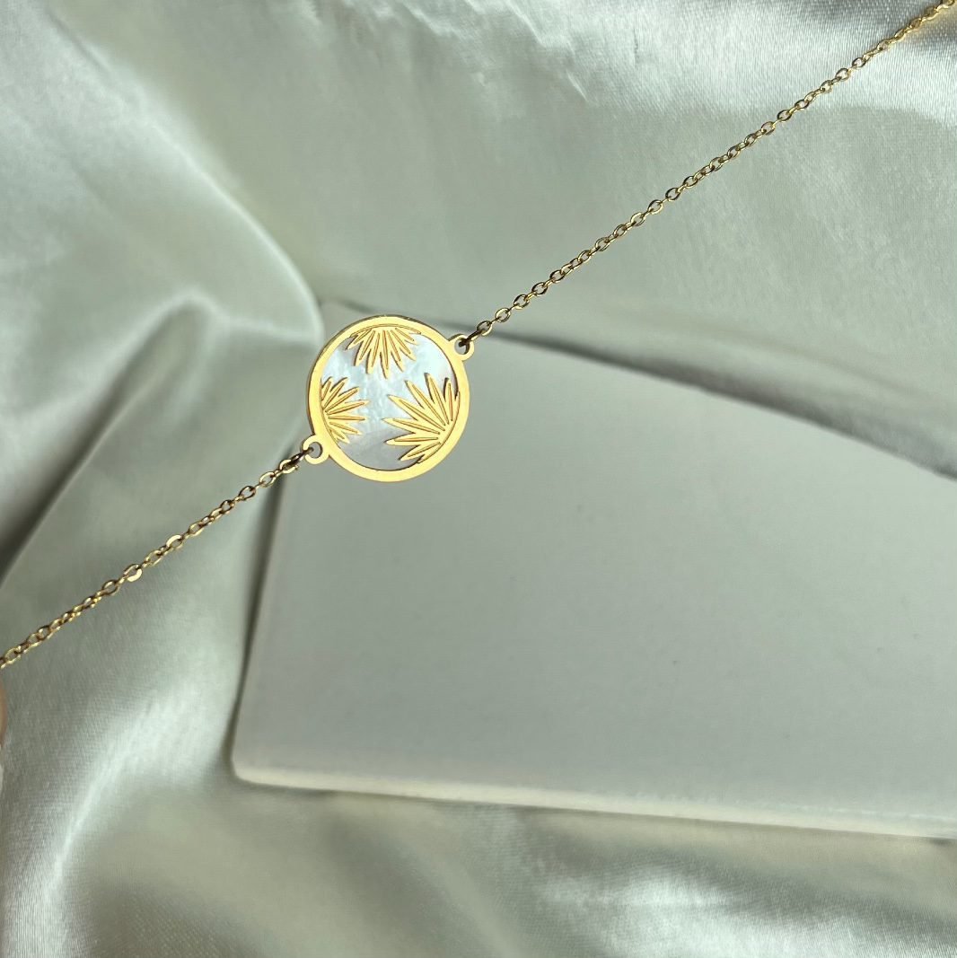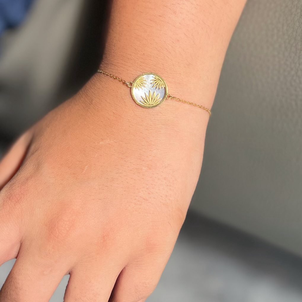 Glow like the moon with our stunning mother of pearl bracelet.(Gold)