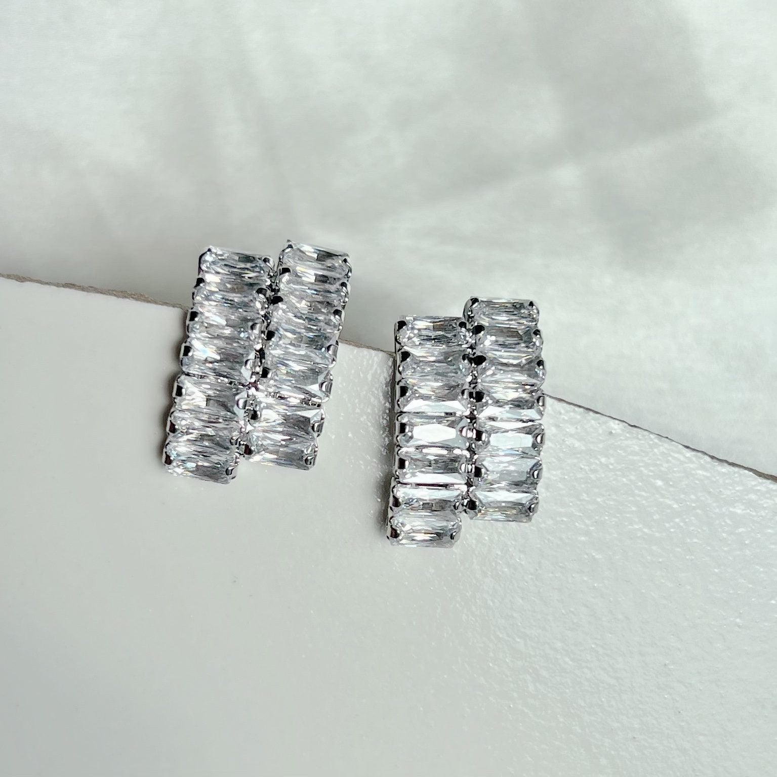 Enhance your look when you wear these sparkling earrings. (Silver)