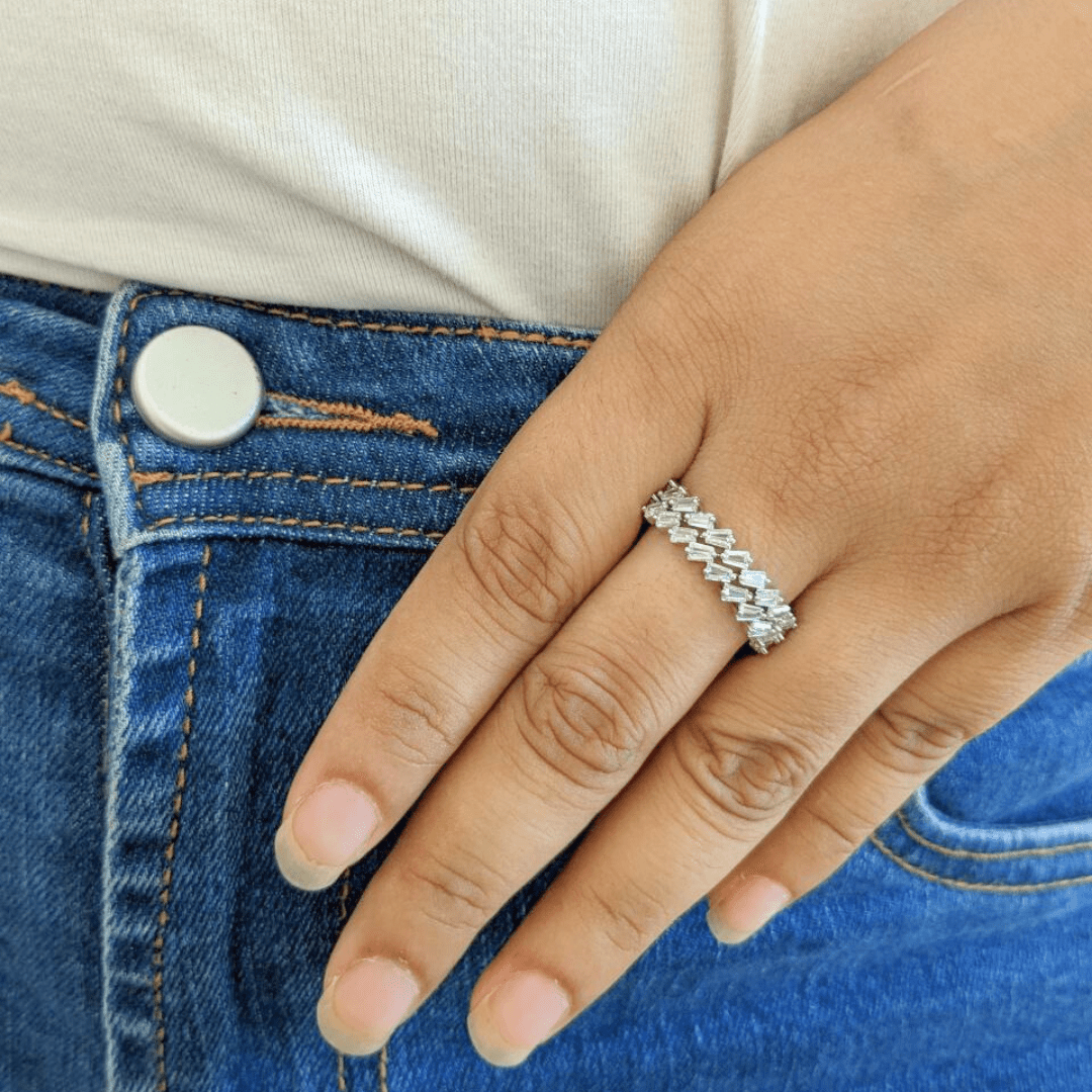 Elevate your ring collection with this stunning piece of jewellery that combines the elegance of silver with the brilliance of diamonds. (Silver)