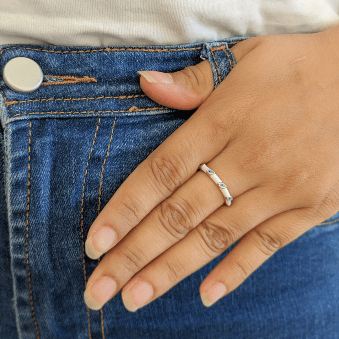 Slim White Nazar Ring
