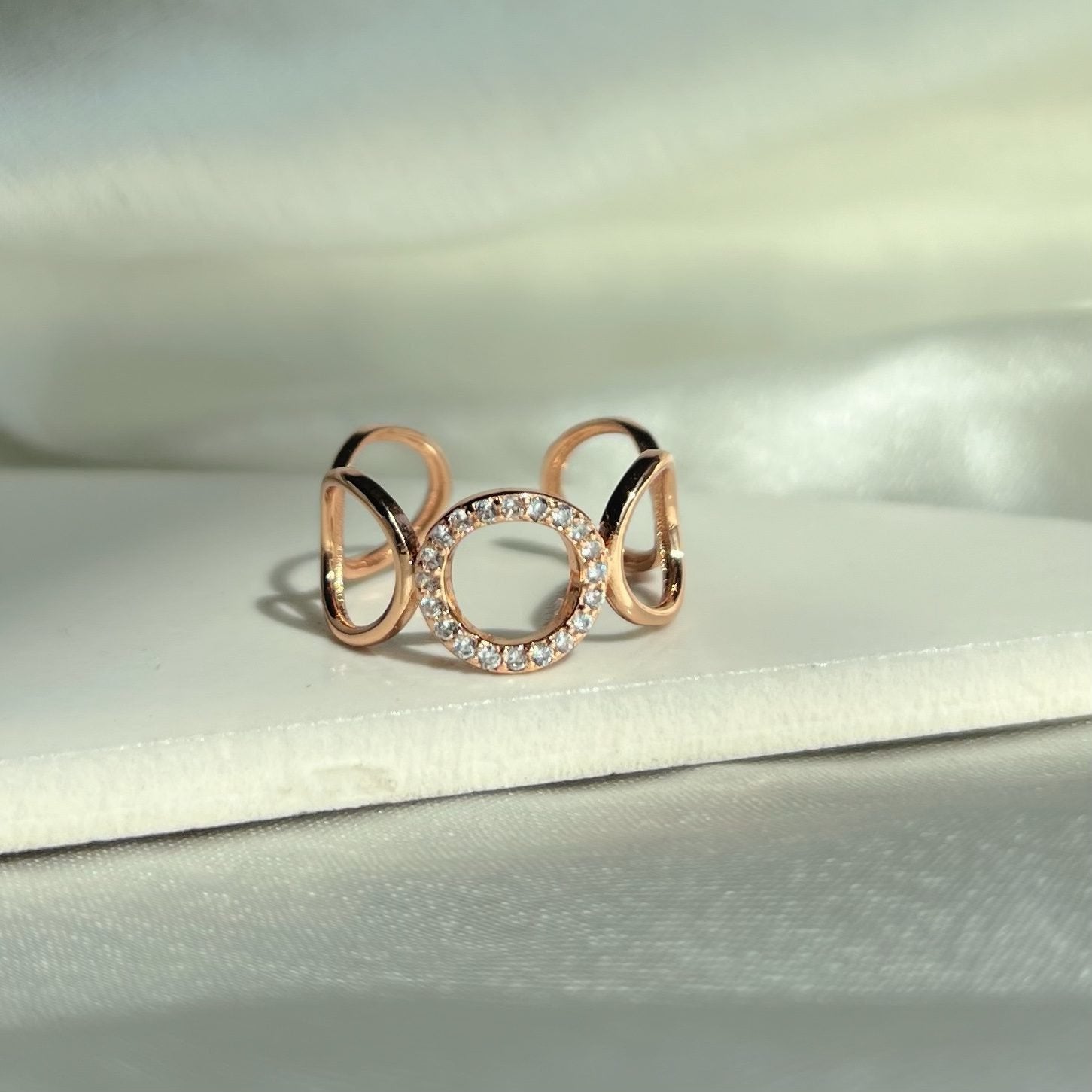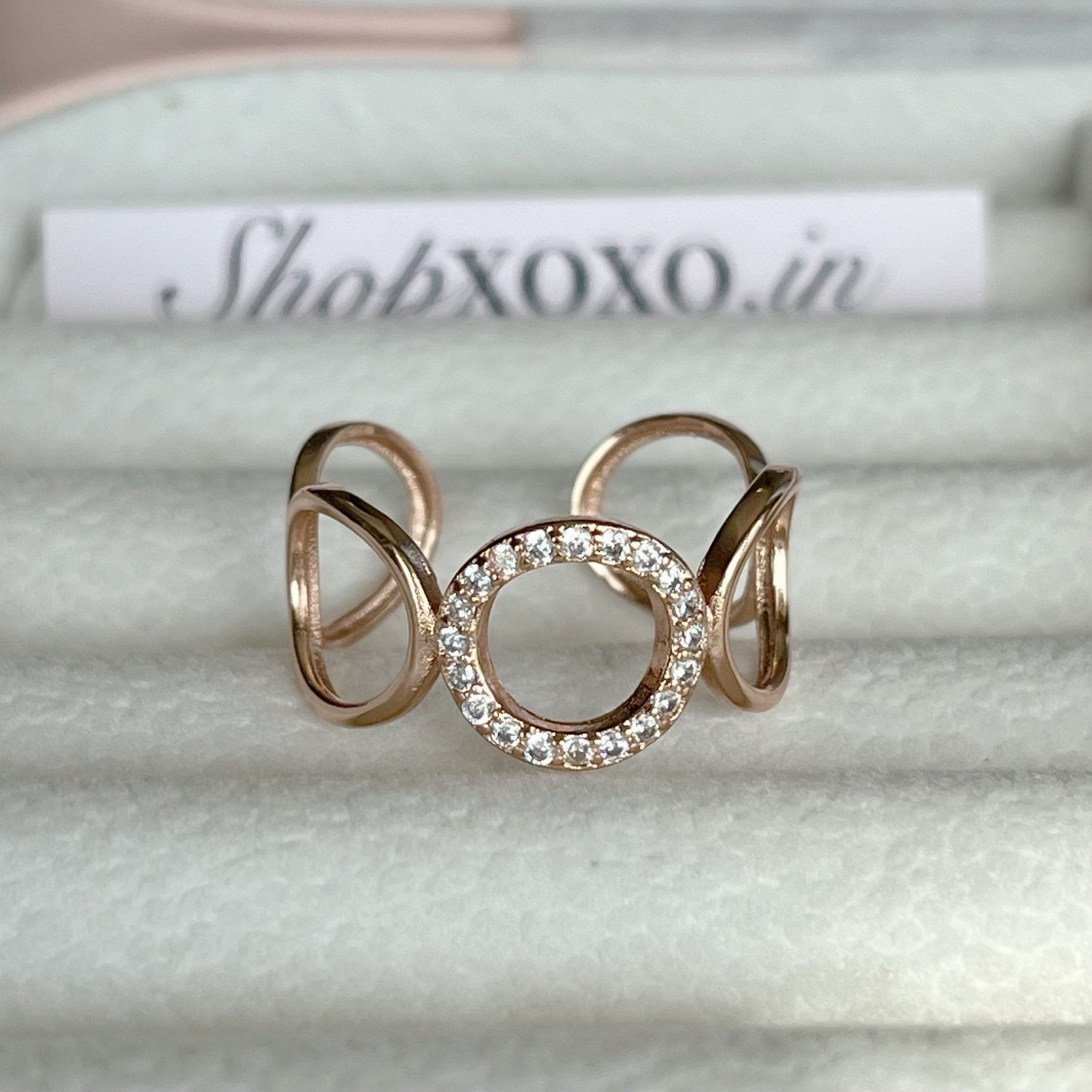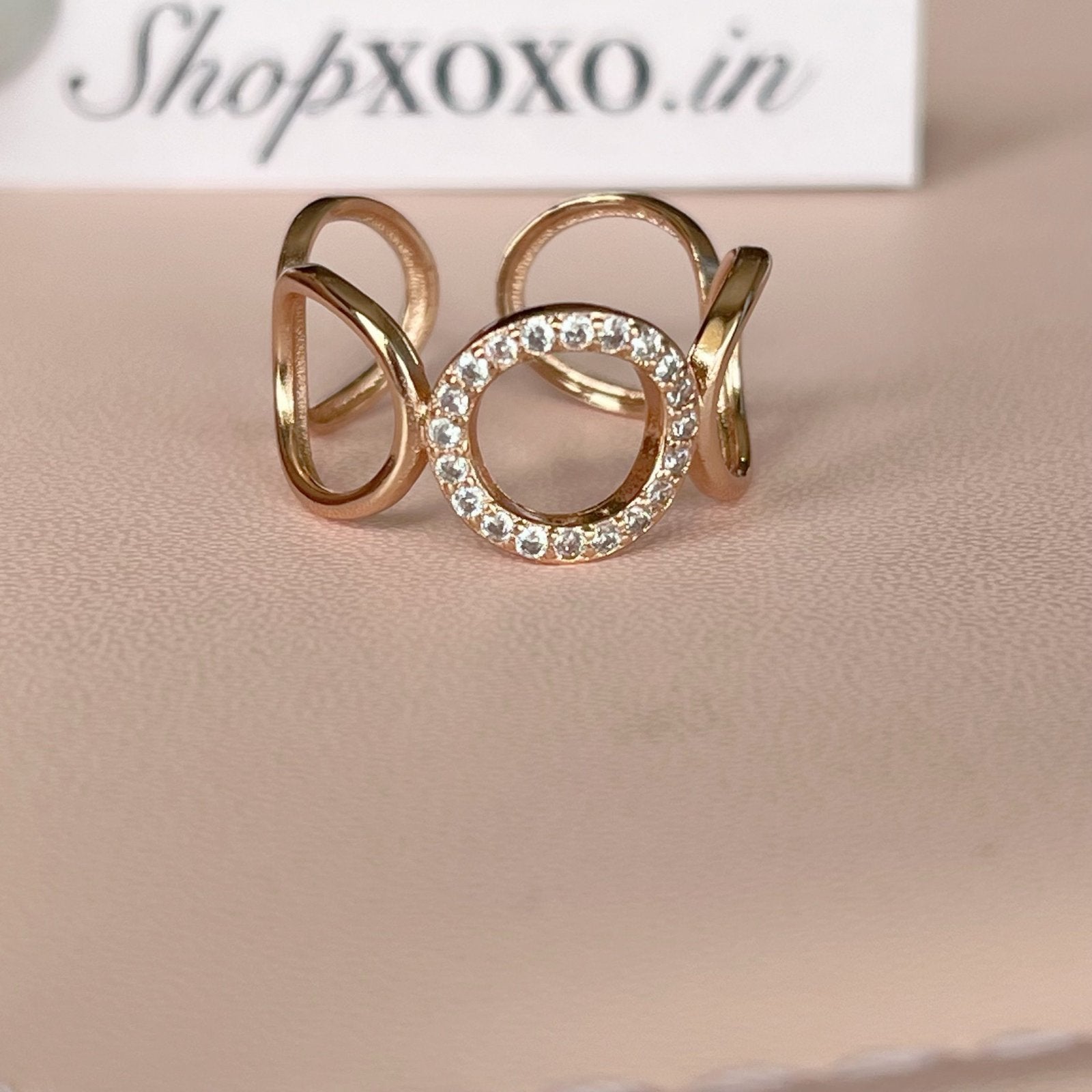 Glam up your outfit with this uniquely designed rose ring. (Rose gold)