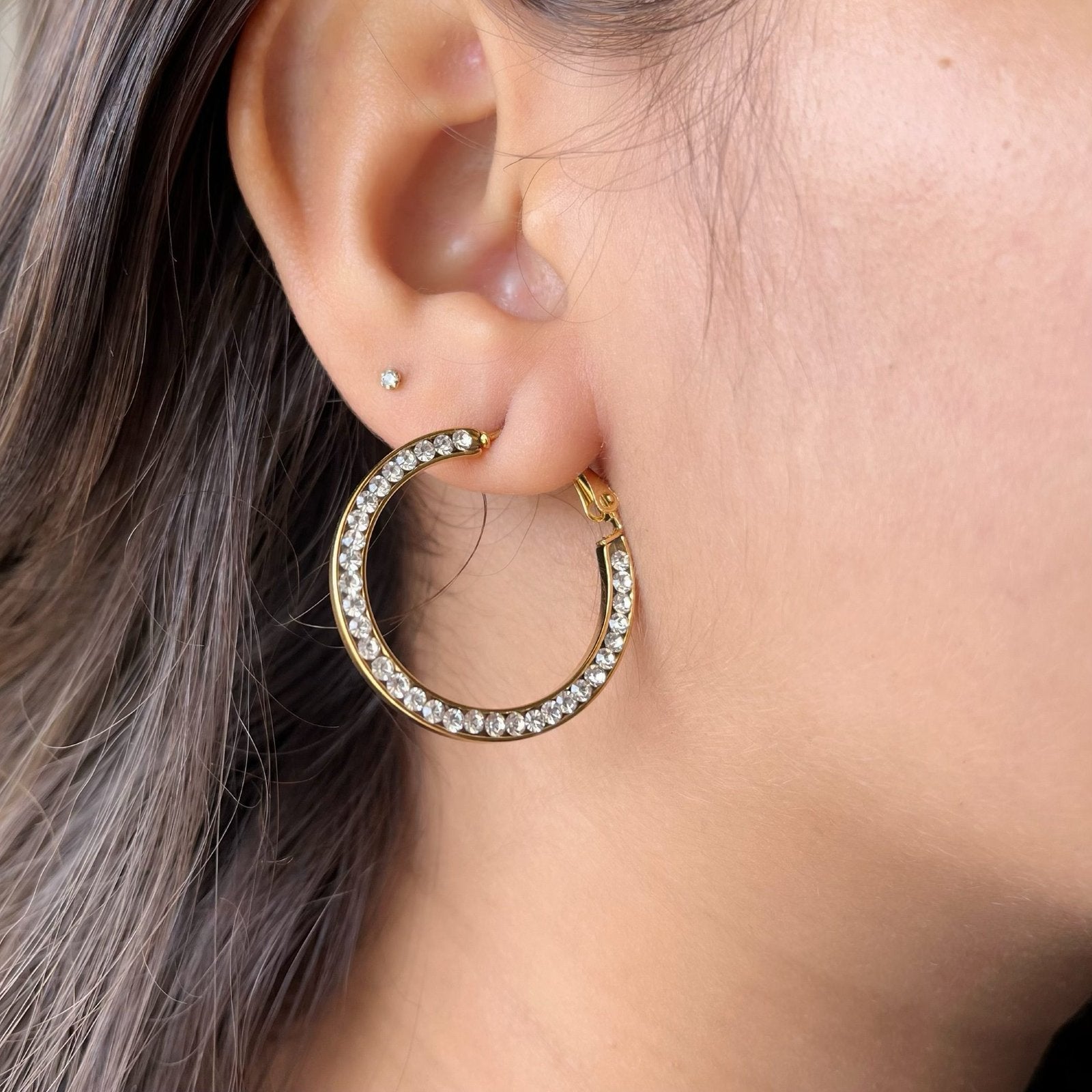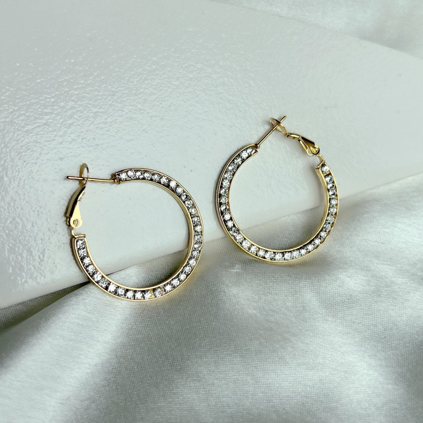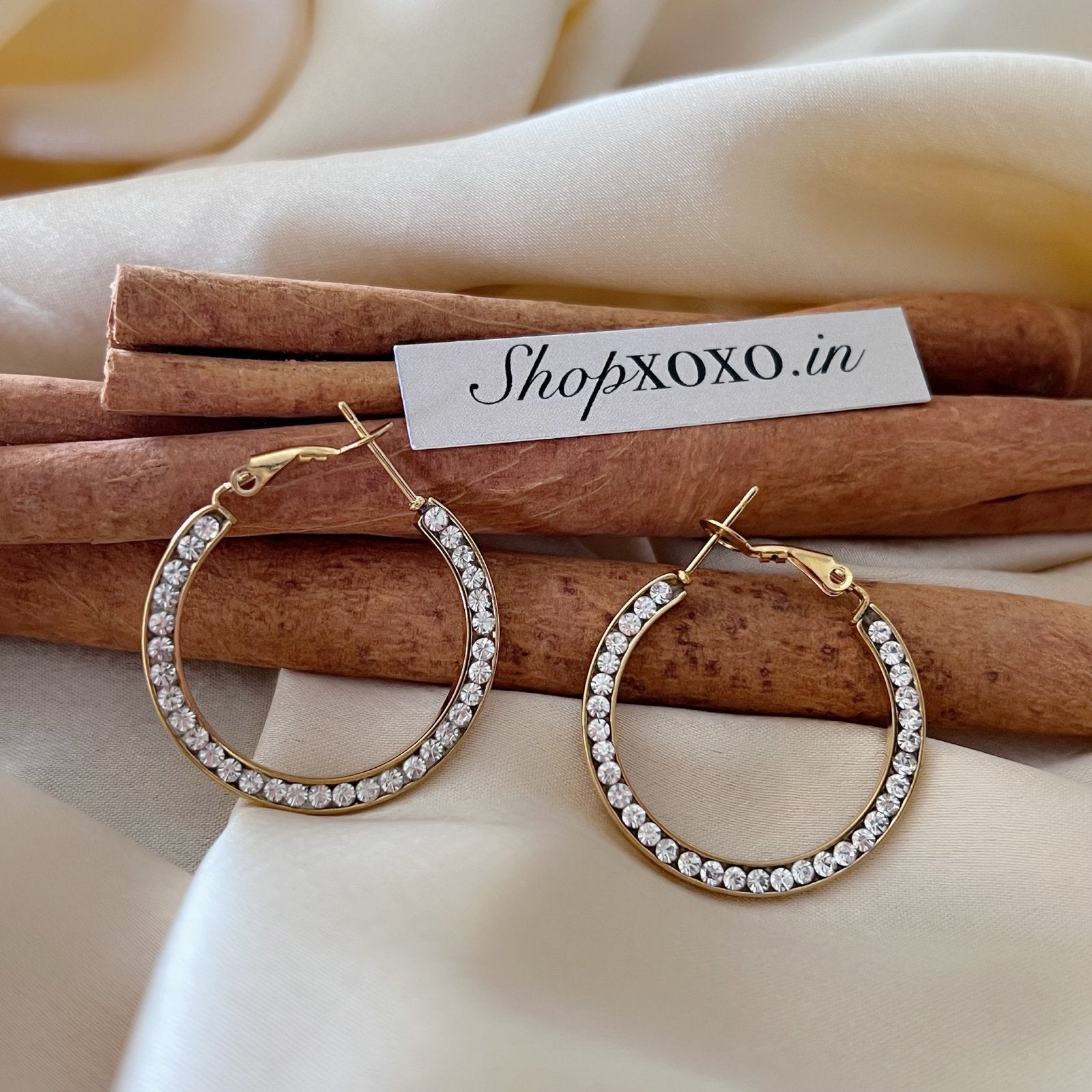 Adorn your ears with these elegant diamond hoops which you can wear on every occasion. (Gold)