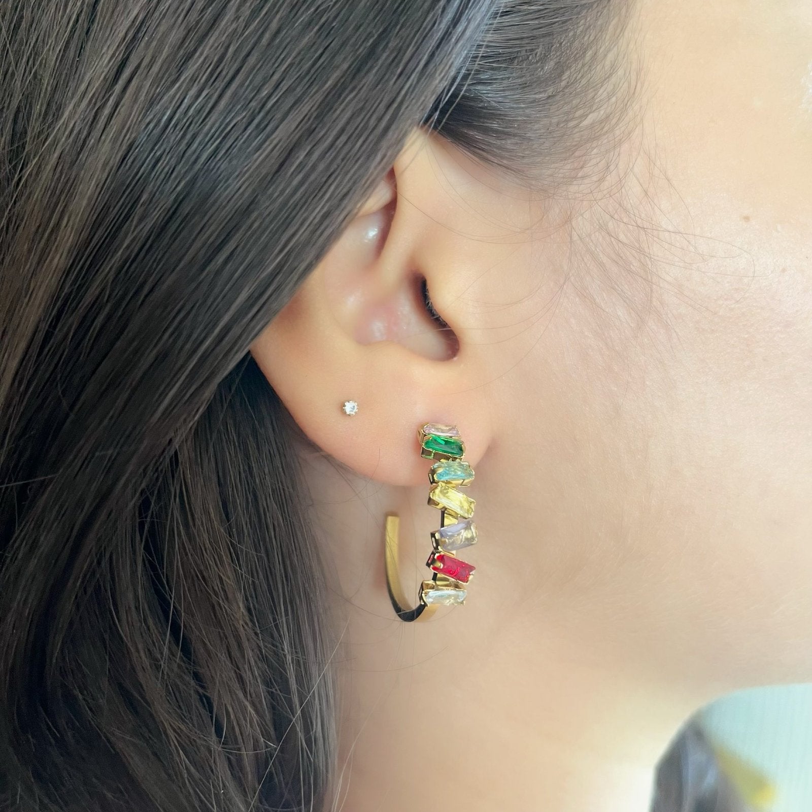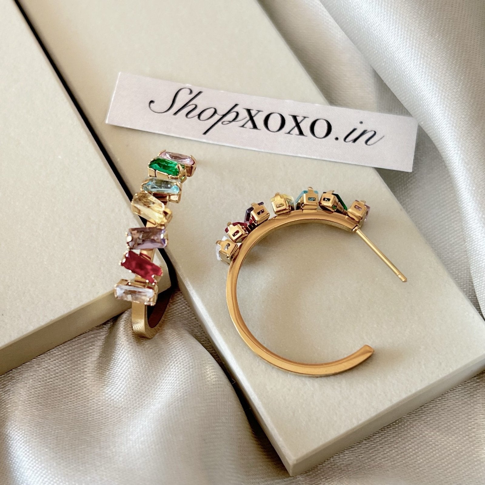 Add a pop of colour to your everyday look with these fashionable multicolour hoops. (Gold)
