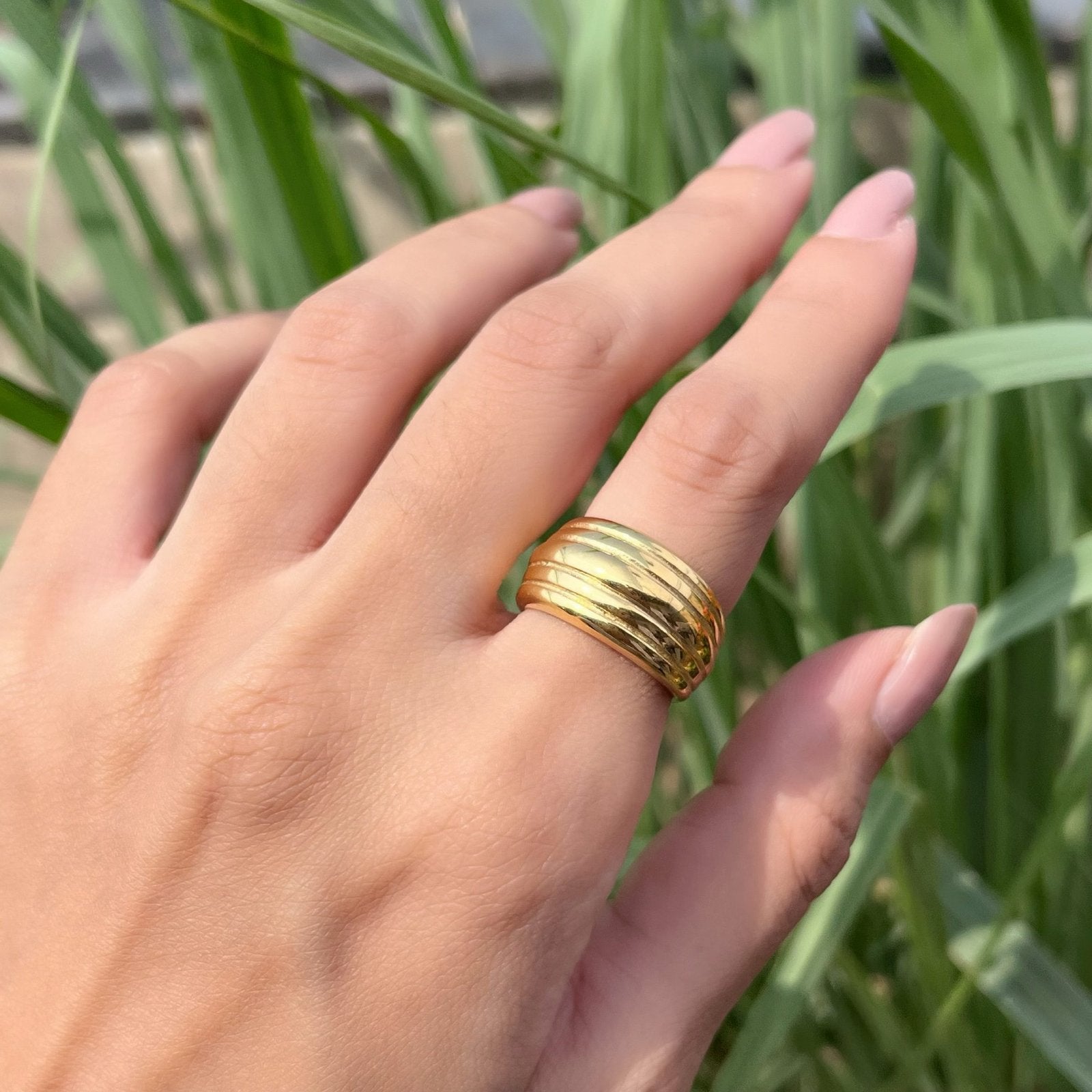 Wear your confidence around your finger with this chunky gold statement piece. (Gold)