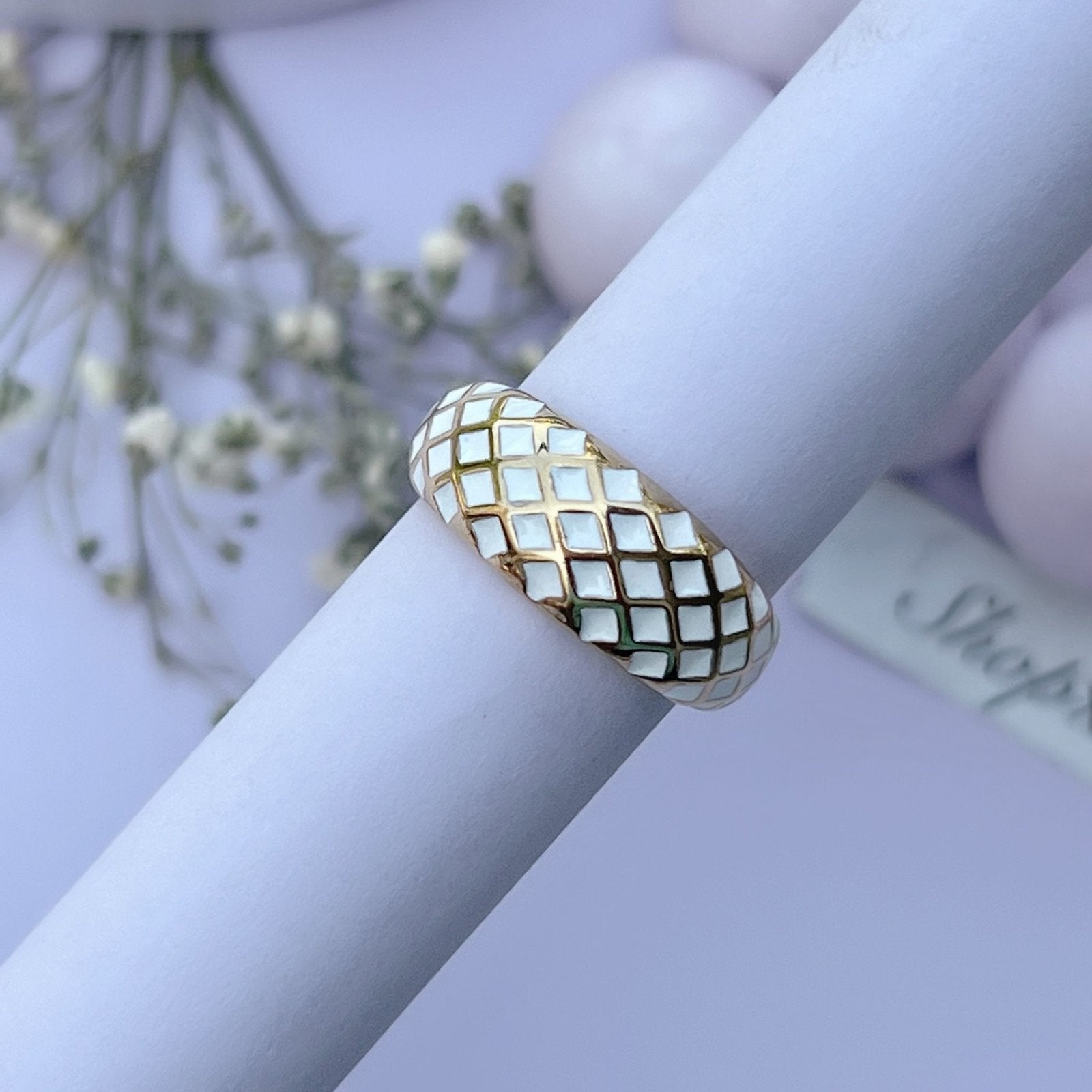White Criss Cross Ring