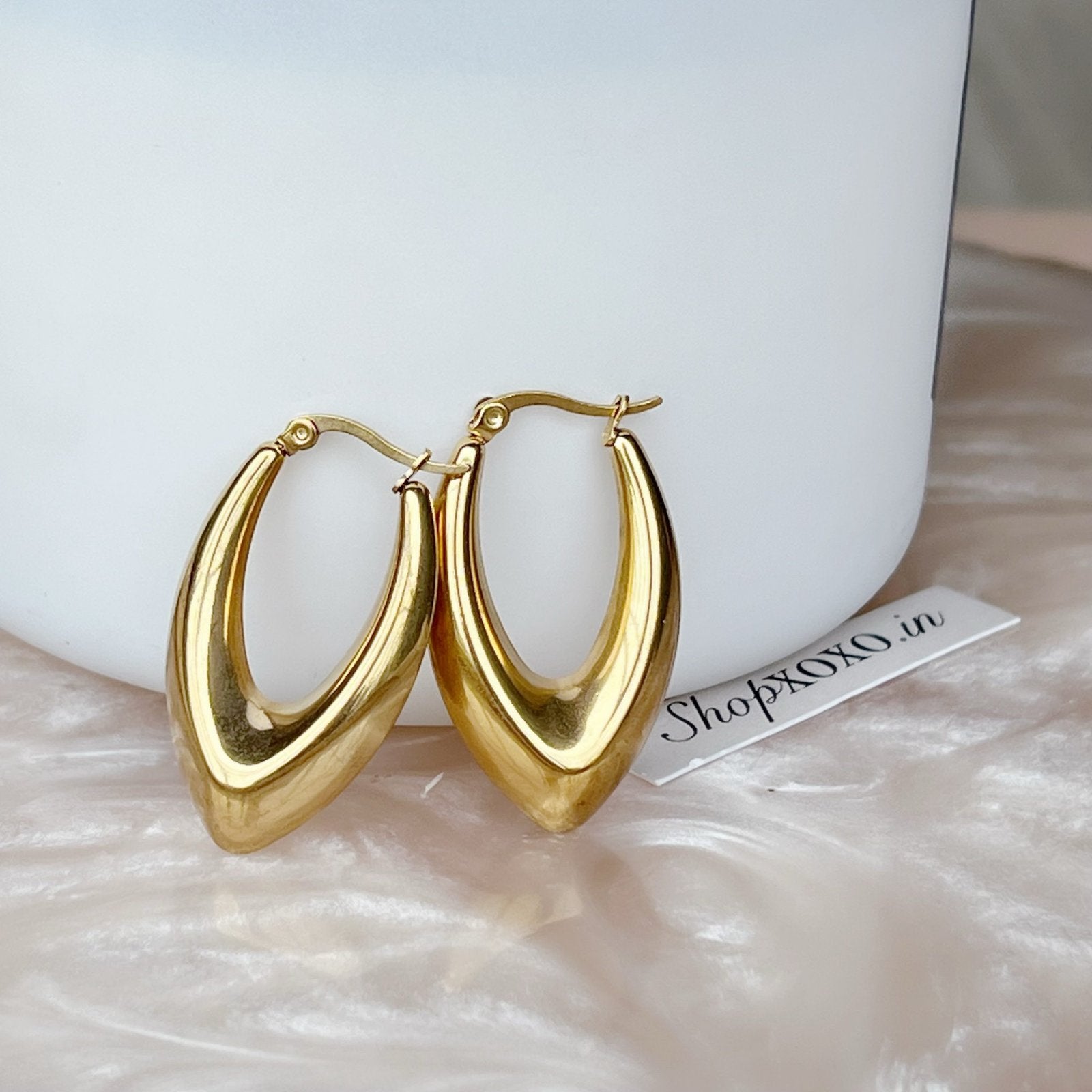 Introducing Willow Hoops! Crafted with exquisite gold, these unique hoops are perfect for everyday wear. Radiate elegance and sophistication effortlessly with these versatile pieces. Elevate any outfit, from casual to formal, with the timeless charm of Willow Hoops. Immerse yourself in the world of luxurious fashion, be the epitome of style with these dainty accessories.